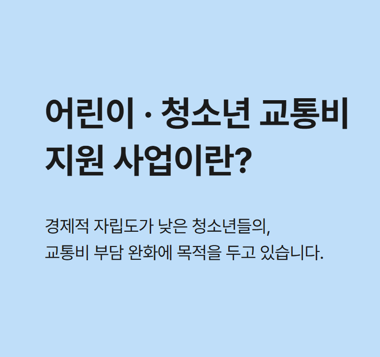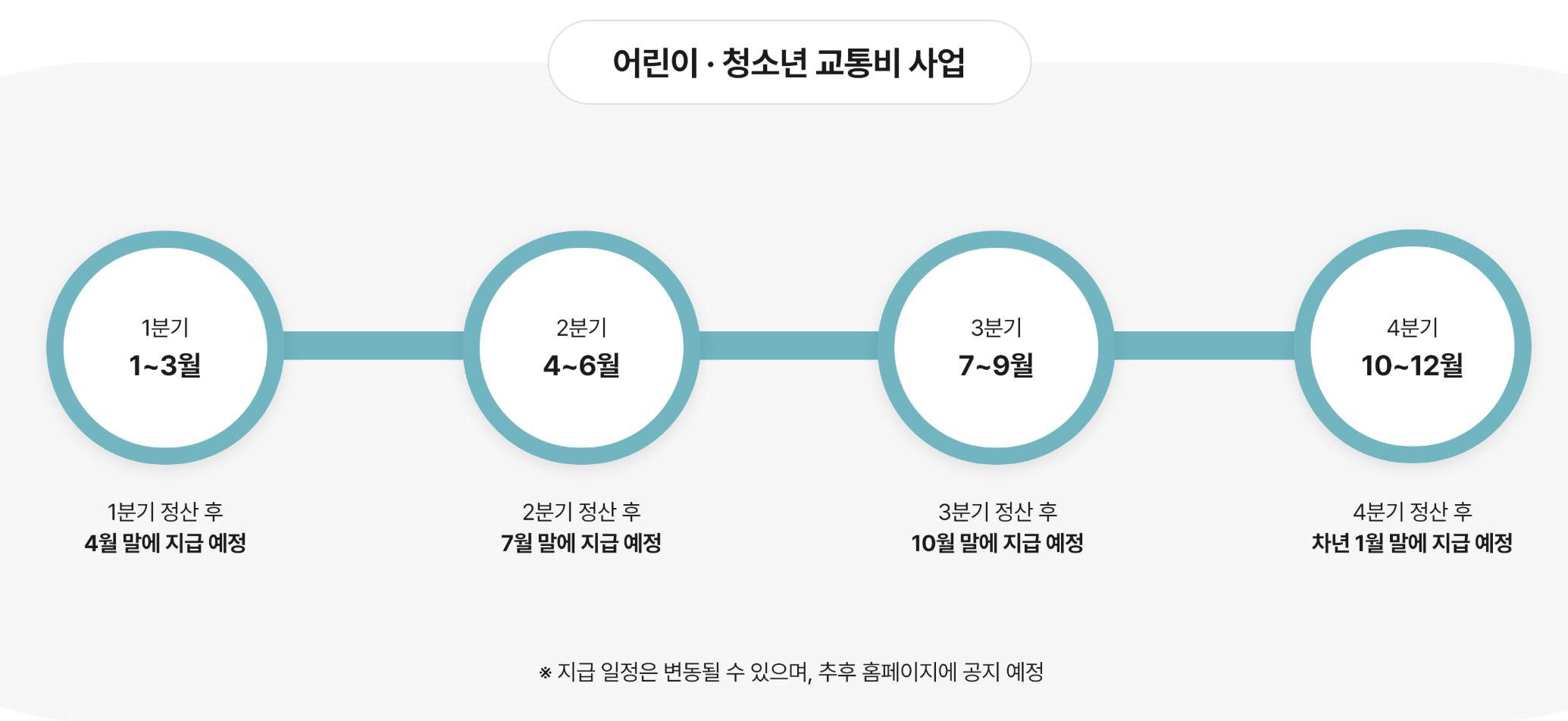 - 신청 방법: 경기도 어린이 청소년 교통비 지원 포털에서 상시 신청 가능